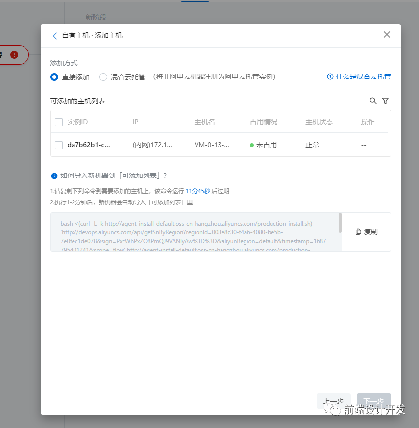 复制下面的命令,登录到对应的服务器去执行该命令,即可完成安装,完成后,可添加的主机列表就会出现对应的服务器。就可以选择该主机进行部署了。