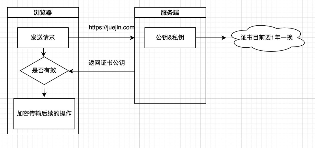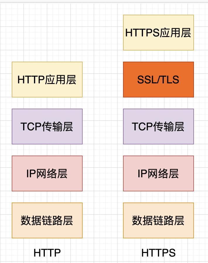 如果访问的是 HTTP 请求那就可以访问,HTTPS 就不能访问,侧面证明了 HTTPS 的证书问题。HTTPS 对称加密的秘钥我们采用非对称加密传输,数据传输还是使用对称加密,这保证了数据加密传输,为了保证防止冒充,CA(Certificate Authority), 颁发的证书就称为数字证书 (Digital Certificate),在非对称加密阶段,服务器会把证书会带着非对称加密的公钥,一起返回,向浏览器证明服务器的身份 HTTPS 相比 HTTP 多了一层 SSL/TLS(安全层)如下图。