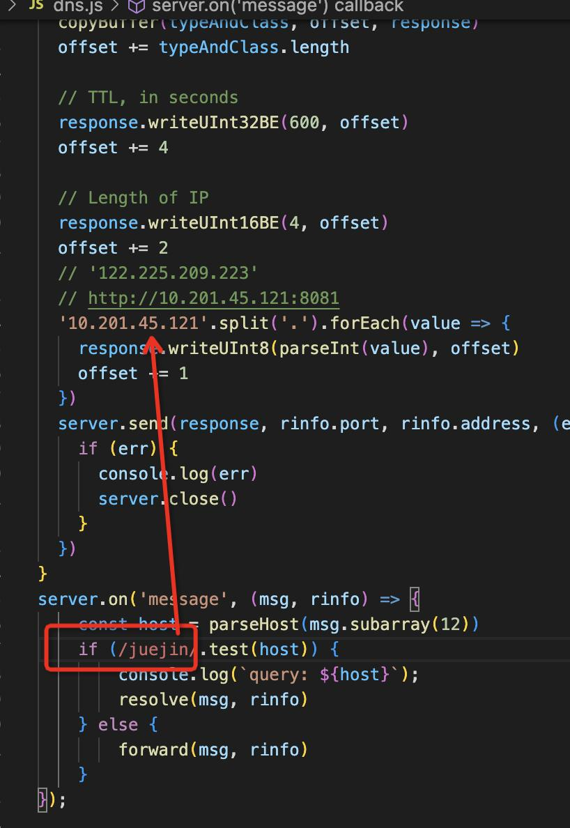 step2: 启动一个本地 DNS 服务,拦截所有请求转发到自己启动的 IP 点击查看源码 (https://sitecdn.zcycdn.com/f2e-assets/7da606eb-d8fc-4a01-a633-fcfd60edc2c5.js)