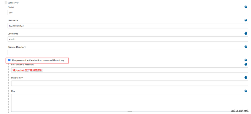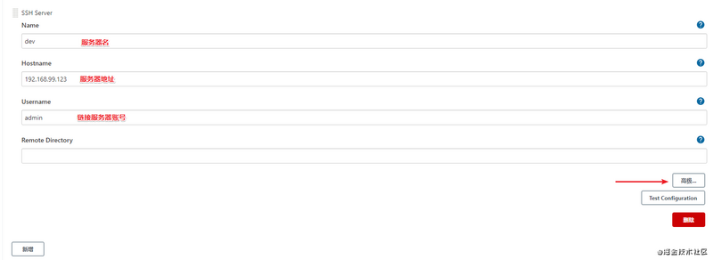 比如需要发布到开发环境的远程机,添加以下信息。
