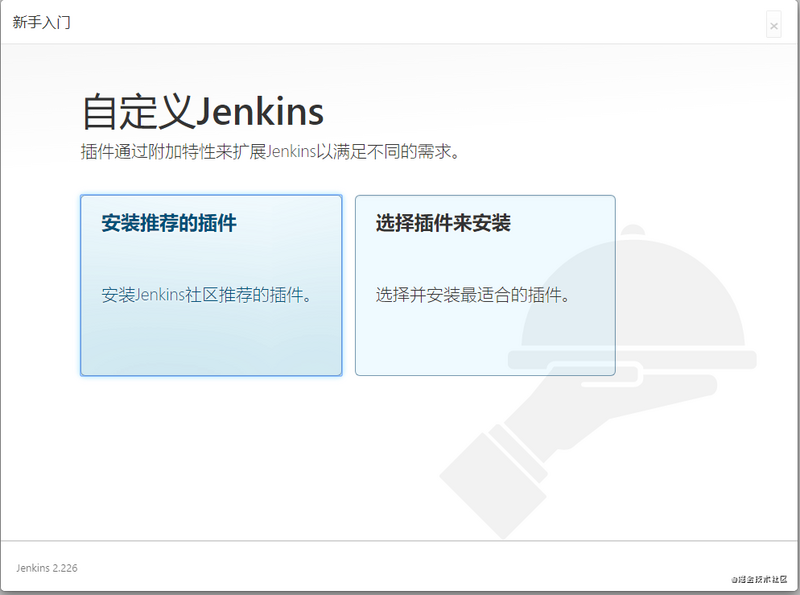 成功启动容器后,访问 Jenkins 服务器 IP 地址加端口号,进行 Jenkins 初始化,初始化的管理员密码从日志中可以获取。