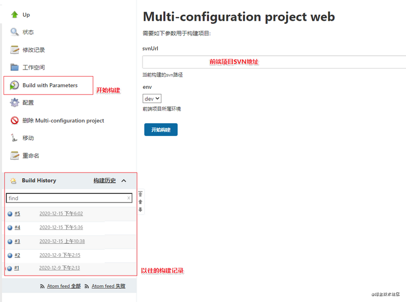 完成配置后,点击 Build with Parameters 开始构建,构建前需要填写构建参数。