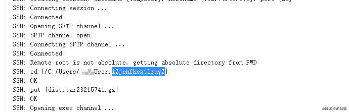 当配置的目标机器为 windows 系统时,文件会被送到配置远程链接的账户所属用户文件夹下。在传输完毕后,预留的 superDeploy.bat 文件会被执行。