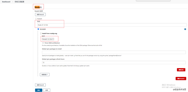 在系统管理 - 全局工具配置中,找到 NodeJS。