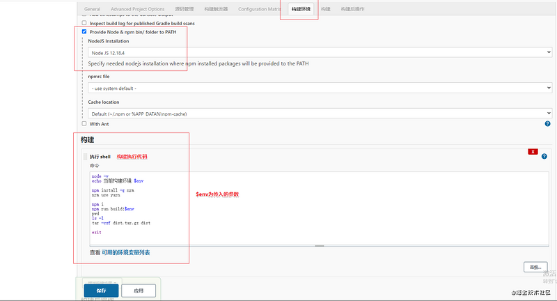 { "scripts": { "build:dev": "vue-cli-service build --mode=dev", "build:test": "vue-cli-service build --mode=test", "build:prod": "vue-cli-service build --mode=prod" }}此处利用了 vue-cli3.0 提供的构建命令和环境变量文件,来提供各环境的打包命令。前端项目需要配置多种打包命令,来支持 Jenkins 的动态环境构建。