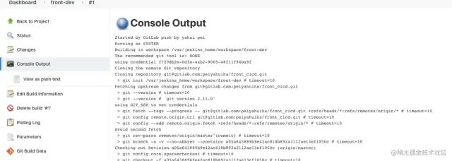 好了, 到这时候, 就打通了 gitlab 到 jenkins 的过程, 进度完成了一大半了, 加油~~~~