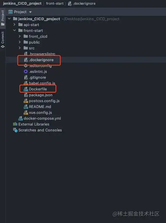 前提: 请准备好你的 vue 项目, 并且能确保 npm run build 成功 (1) 在当前目录下面创建 Dockerfile 和. dockerignore 文件