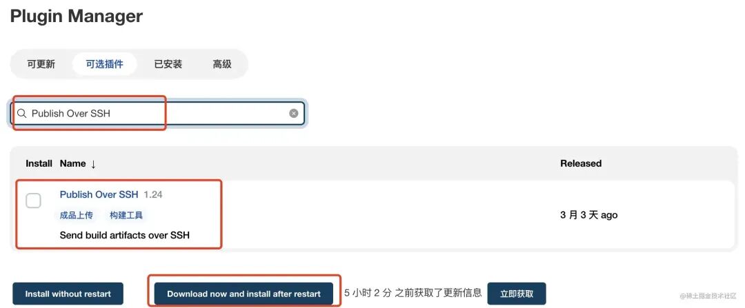 1,系统管理 -> 插件管理 搜索 Publish Over SSH 进行安装。