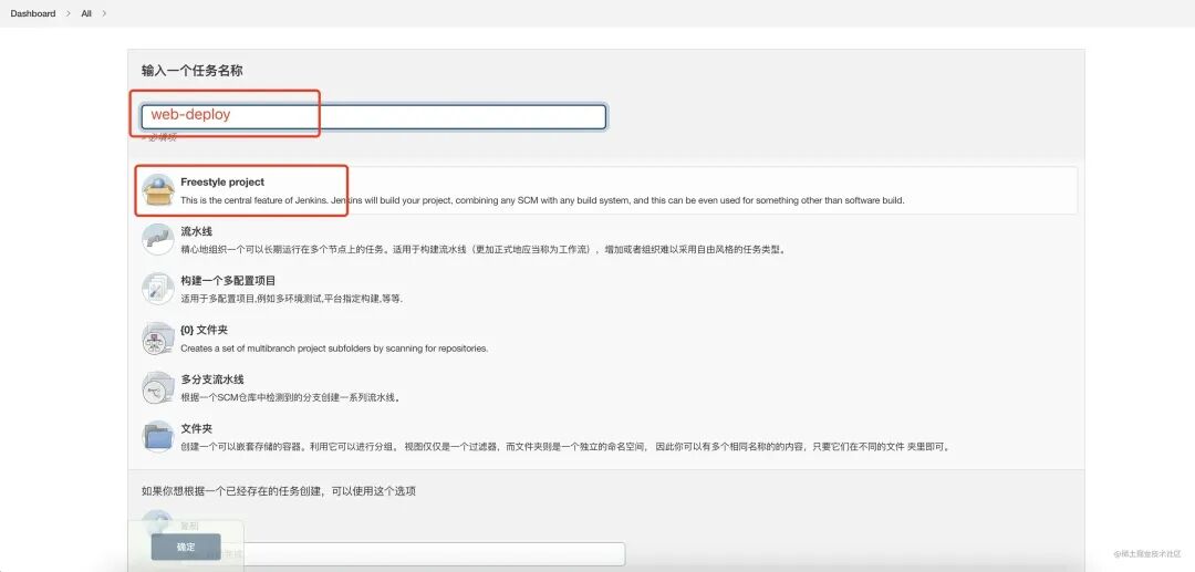 点击 新建 Item 创建一个 Freestyle Project