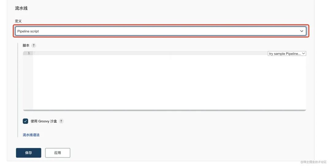 新建任务 -> 选择流水线 其他内容可以都不用管,只关注流水线 有两种选择,演示就选择第一种。