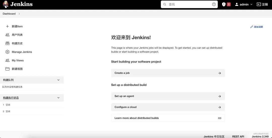 Jenkins 安装大体分两种方式,一种使用 Docker 另一种则是直接安装,示例选择后者。不管使用哪种方式安装,最终使用层面都是一样的。 Linux 安装 [1], Docker 安装 [2]