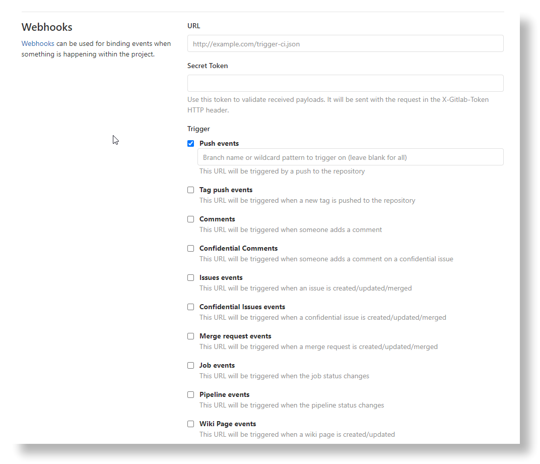 而且,绝大部分代码托管平台都提供了 webhooks,能监控不少事件,比如 push 和 merge。