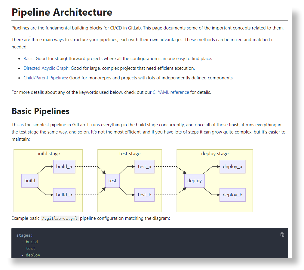 由于我们的代码是托管在自建的 gitlab 服务器上,所以 CI/CD 这块我直接选择了用 gitlab 自带的 CI/CD 能力。工作之余,我差不多花了两天时间去熟悉 gitlab CI/CD 的文档 [3]。