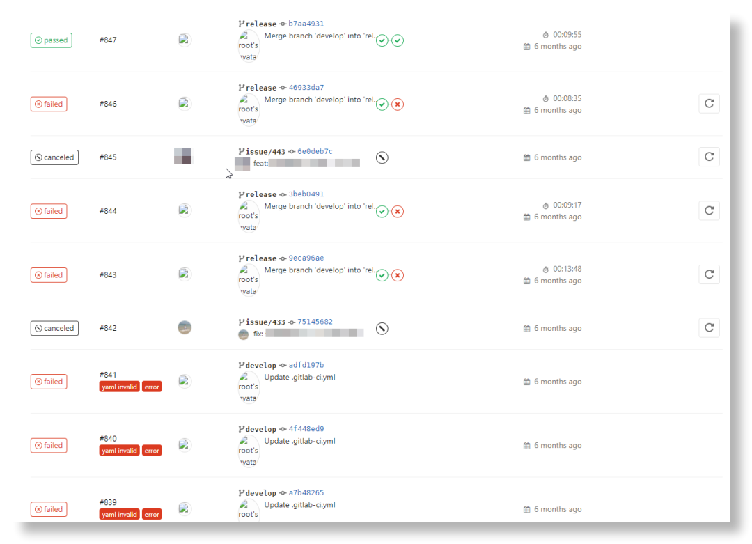 然后我按照文档先把环境搭建好,接着一遍遍地调试.gitlab-ci.yml配置文件,我记得第一次成功跑完一个 Pipeline 前,我一共失败了大概 11 次,这个过程挺折磨人,有时候你就是不知道到底哪里配错了。