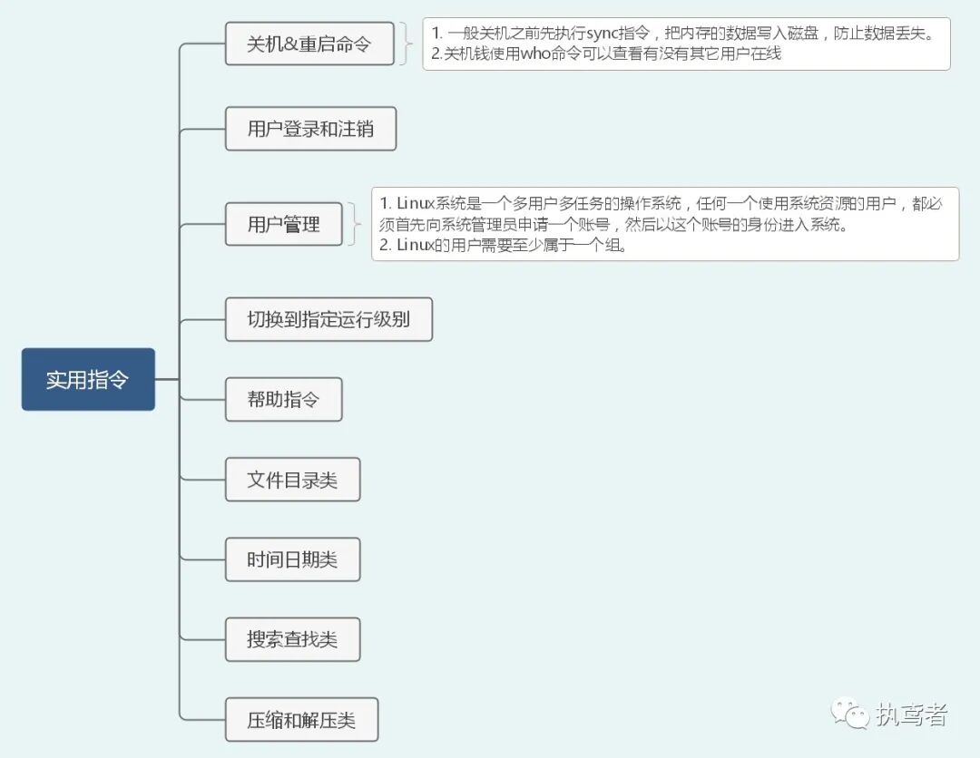 主要阐述了一系列实用指令,包括:关机 & 重启命令;用户登录和注销;用户管理;切换到指定运行级别;帮助指令;文件目录类;时间日期类;搜索查找类;压缩和解压类。