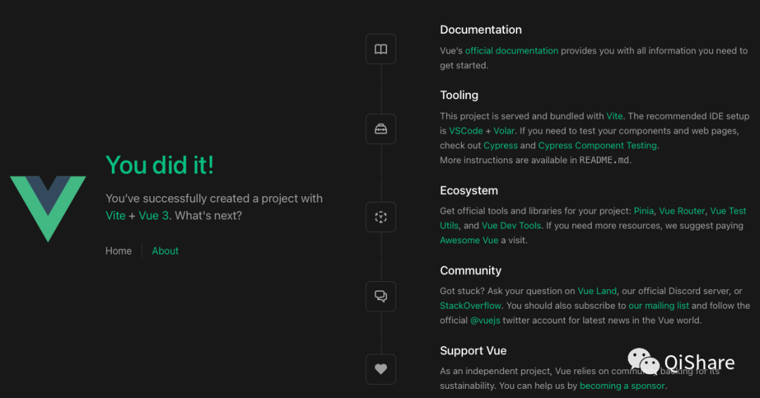 > cd <your-project-name>> npm install> npm run dev运行后在浏览器中打开本地地址,得到如下页面: