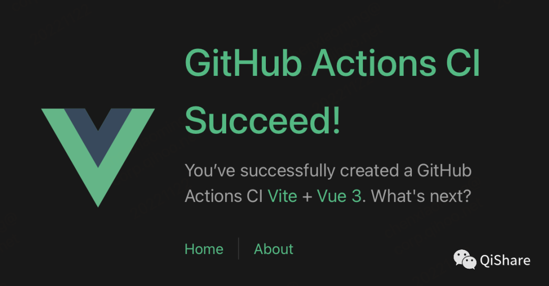 <HelloWorld msg="GitHub Actions CI Succeed!" />push可以点击Actions查看工作流的运行情况当这个黄色加载动画变成绿色后表示