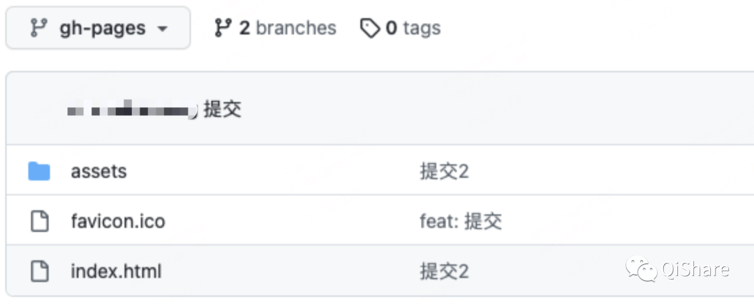 gh-pages, 并且将原有内容全部删除, 最后将dist文件夹下的内容全部拷贝到gh-pages上,push 到远端.再次点击