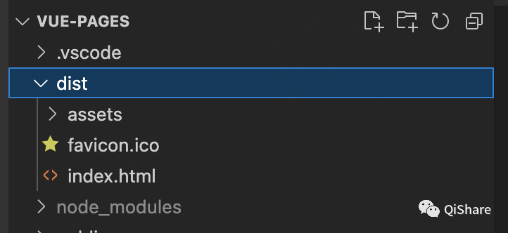 gh-pages分支打包应用,执行npm run build,在项目根目录下得到打包后的产物dist文件夹,切换当前分支到