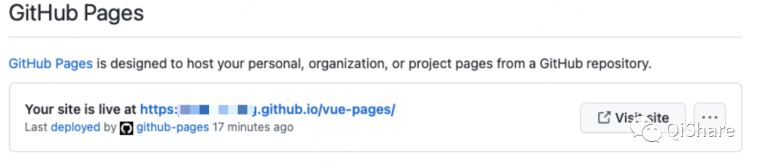 module.exports = { /** * publicPath 默认是 / 是根路径,这个是指服务的根路径:https://xxx.github.io/,发布后会从这个路径下找 js.css 等资源,而生成的网站路径是这个 https://xxx.github.io/Vue-Element/,显然是找不到的 * 我们需要修改为 相对路径'./' 或是‘.’ 或是 直接设置的项目子路径 :/项目名称/ 就可找到资源了 */ publicPath: './', outputDir: 'dist', // dist assetsDir: 'static', lintOnSave: process.env.NODE_ENV === 'development', productionSourceMap: false,...重新打包,将dist文件夹下内容拷贝到gh-pages分支下,并重新打开pages链接:https://<用户名>.github.io/vue-pages/成功部署!