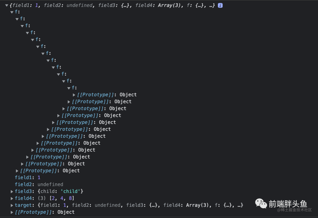 const deepClone = (target, cache = new Map()) => { const isObject = (obj) => typeof obj === 'object' && obj !== null if (isObject(target)) { // 解决循环引用 const cacheTarget = cache.get(target) // 已经存在直接返回,无需再次解析 if (cacheTarget) { return cacheTarget } let cloneTarget = Array.isArray(target) ? [] : {} cache.set(target, cloneTarget) for (const key in target) { if (target.hasOwnProperty(key)) { const value = target[ key ] cloneTarget[ key ] = isObject(value) ? deepClone(value, cache) : value } } return cloneTarget } else { return target }}const target = { field1: 1, field2: undefined, field3: { child: 'child' }, field4: [2, 4, 8], f: { f: { f: { f: { f: { f: { f: { f: { f: { f: { f: { f: {} } } } } } } } } } } },};target.target = target;const result1 = deepClone(target);console.log(result1)- 实现 new 操作符