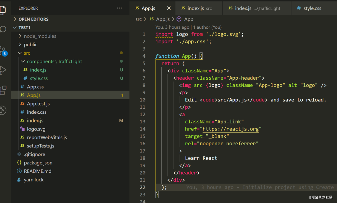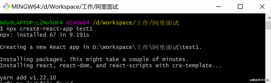 我想首先要能跑得起来 react ,才能知道哪些语法能写,所以我 Google 了 react ,在官网找到了快速起步 npx create-react-app test1。