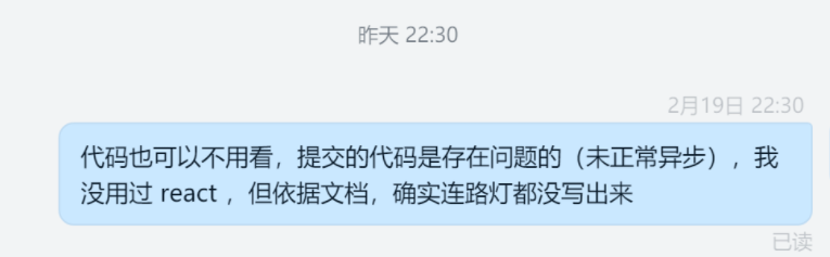 而后 15 分钟便是我最最煎熬的调试时间,我焦急又麻木的一次又一次的尝试,但就是没有解决一个问题。我的状态切换一直没有出现,我知道是异步导致的问题,但我并不知道为什么会这样,我的思维似乎在写完关键函数后就进入了停滞状态...