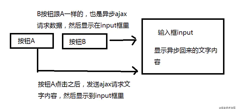 问题就是如果先按 A,此时 ajax 发出去了,但是数据还没返回来, 我们等不及了,马上按 B 按钮,结果此时 A 按钮请求的数据先回来,这就尴尬了,按的 B 按钮,结果先显示 A 按钮返回的数据,怎么解决?