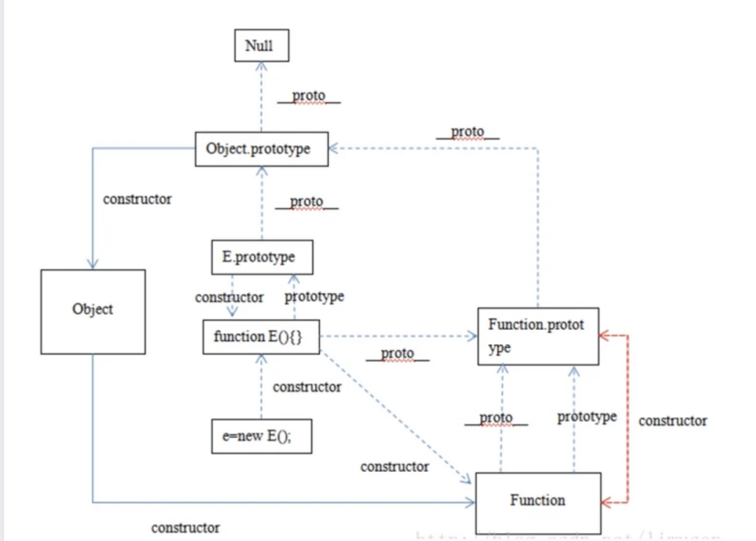 const instance = new Object()则此时, 实例为 instance, 构造函数为 Object,我们知道,构造函数拥有一个prototype的属性指向原型,因此原型为: