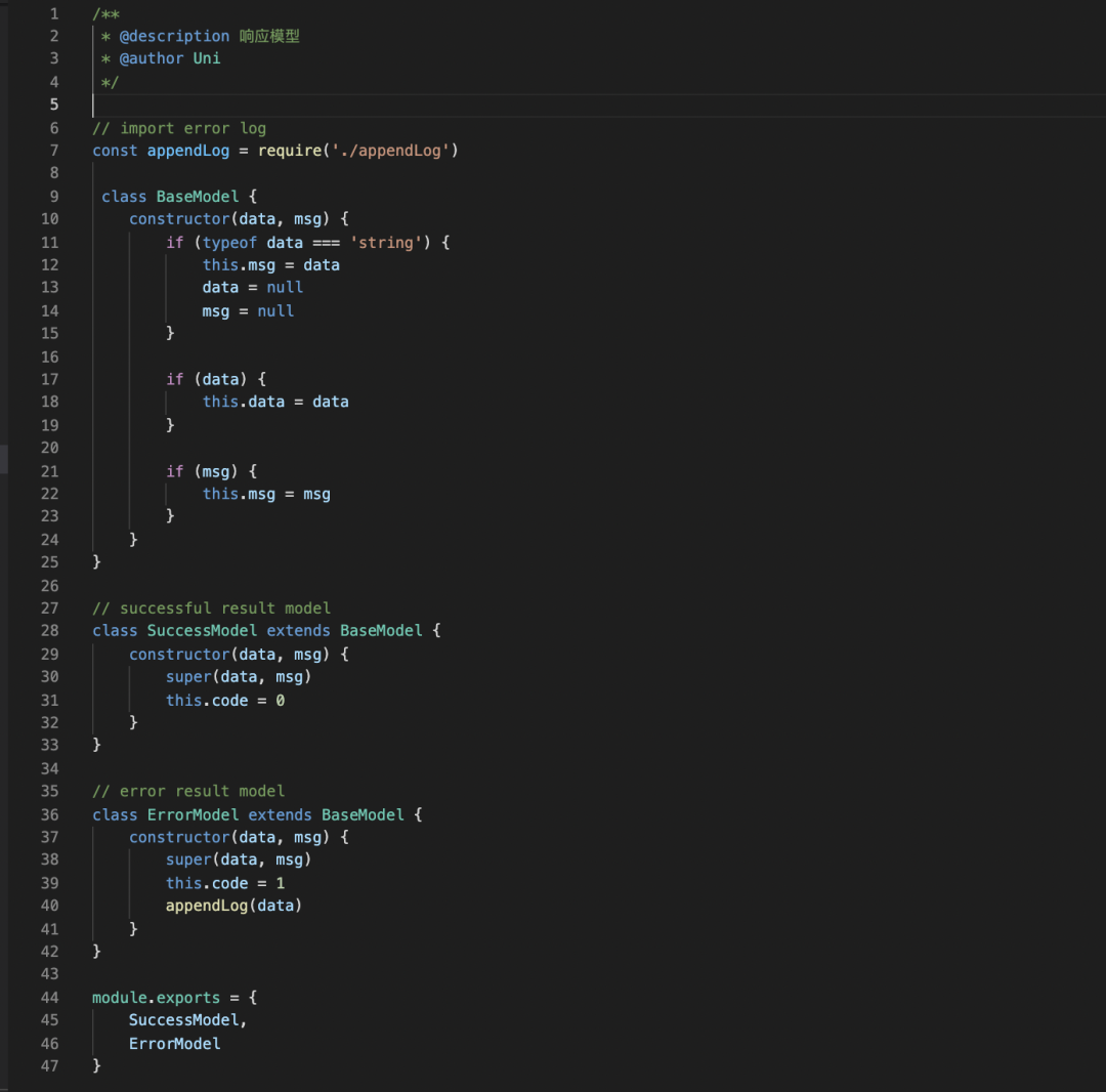 回答:做这个功能的原因主要是当时为了练技术,并没有从整个产品的角度去考虑这一块功能,仅仅是为了实现而实现。在实现上,首先我后端的所有响应类型都是基于 SuccessModel 和 ErrorModel 这两个类产生的,这样能够保证我的响应格式的统一(都是 msg、data、code)