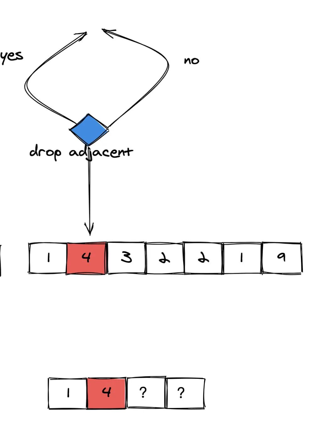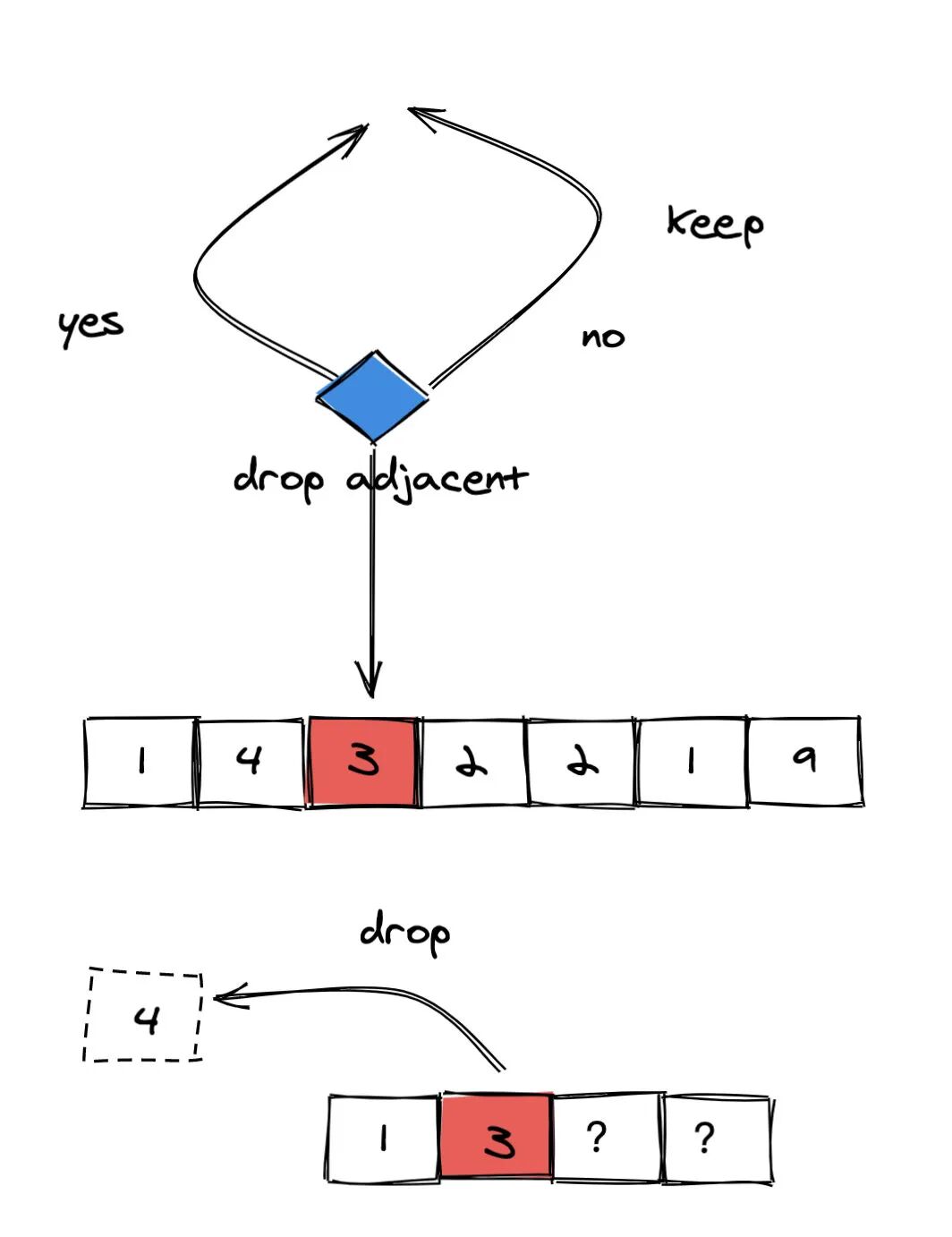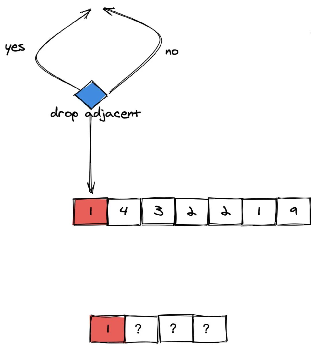 由于没有左侧相邻元素,因此**「没办法丢弃」**。