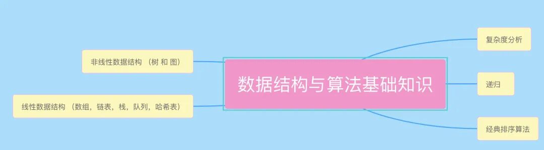 我从大的方向,将考察点分成了两类。第一类是数据结构与算法**「基础知识」**。