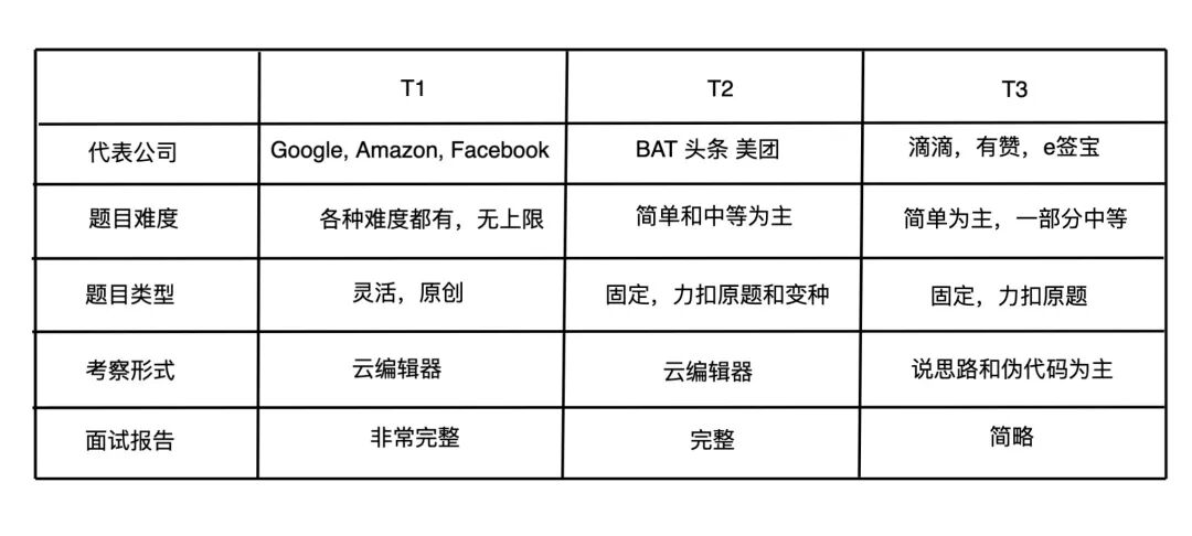 大家可以通过这个表感受不同类型公司算法面试的区别。