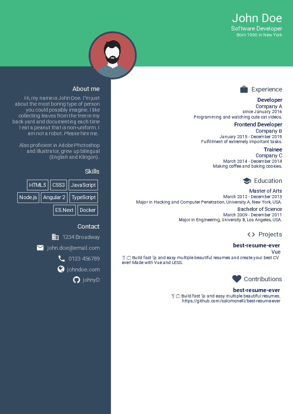 是一个帮助你快速生成漂亮简历的工具,它基于 Vue 和 LESS,生成的简历可导出为 PDF 格式。
