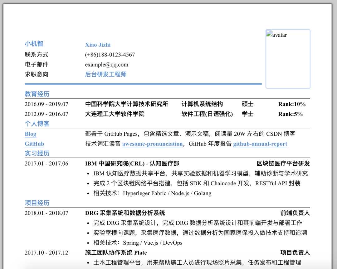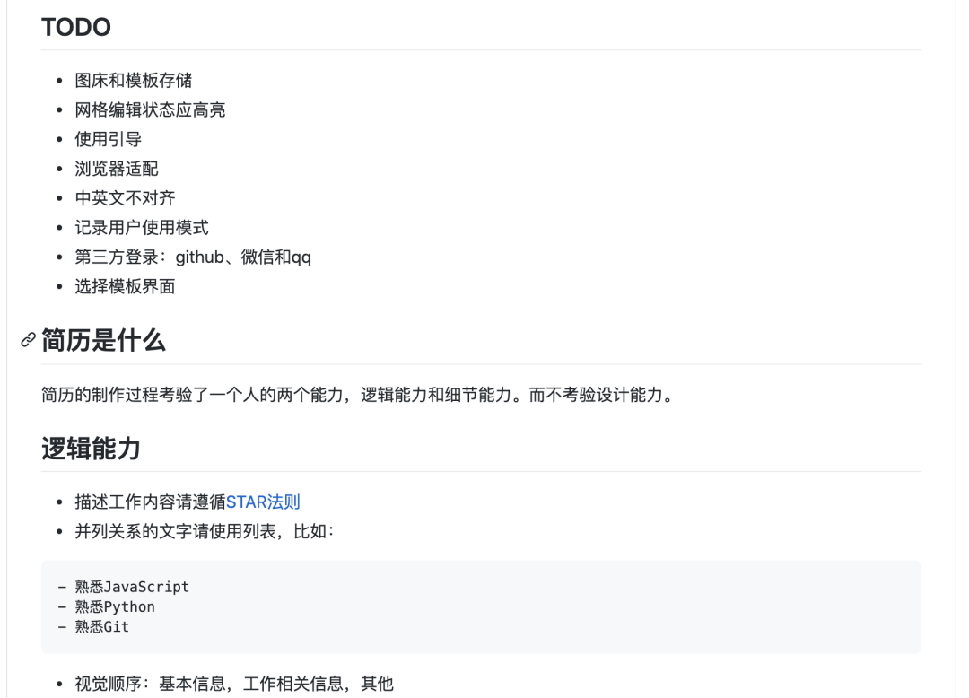 该项目收集了好多个中文的简历开源项目模版,比如: