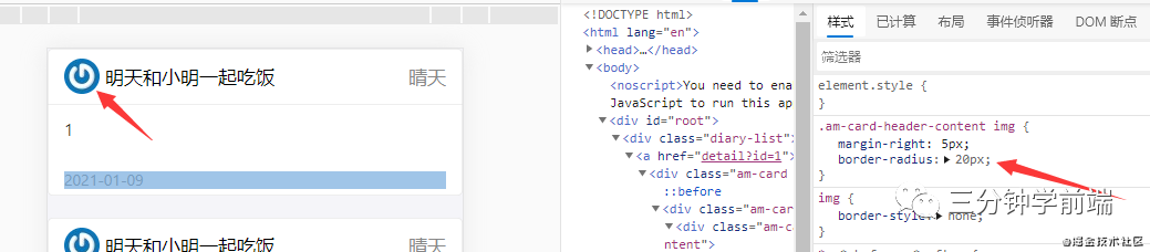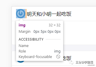 回答:长度和宽度相等,border-radius 设置为长度(宽度)的一半。因为这个头像的长宽都是 32px,所以最合适的就是 16px。评论区指出使用border-radius:50% 更好