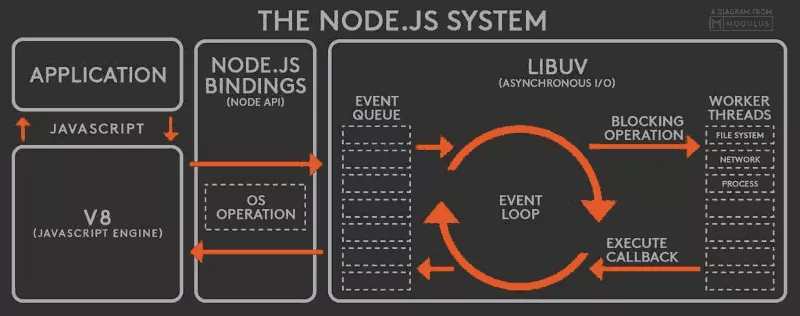 NodeJS 的跨平台能力和事件循环机制都是基于 Libuv 库实现的,你不用关心这个库的具体内容。我们只需要知道 Libuv 库是事件驱动的,并且封装和统一了不同平台的 API 实现。