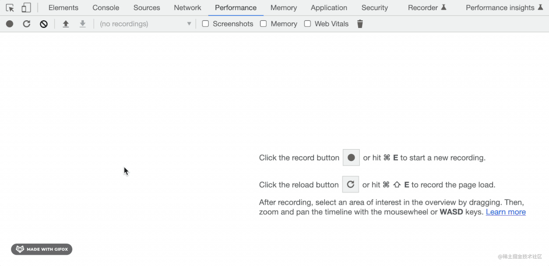 不着急分析它的执行顺序,我们用 performance 工具来看下。