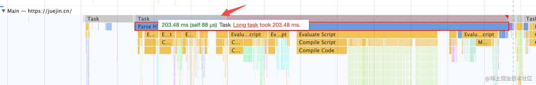 Performance 是 Chrome DevTools 内置的用来分析代码执行耗时的工具,它会记录每个函数、每个宏微任务的耗时,并且会把超过 50ms 的长任务标红,这样开发者就可以针对性的优化。