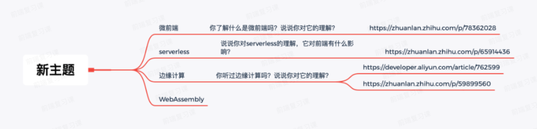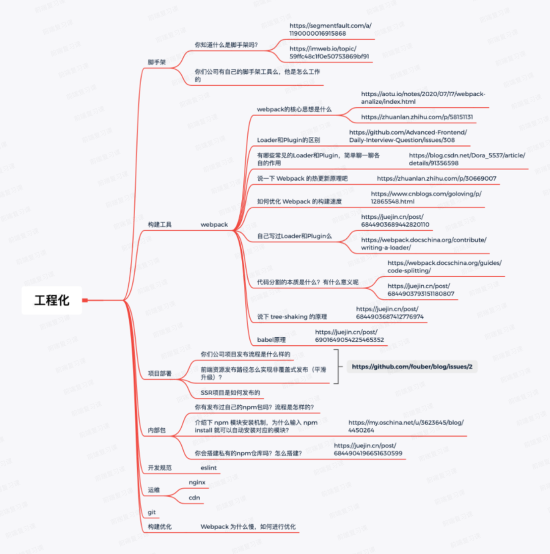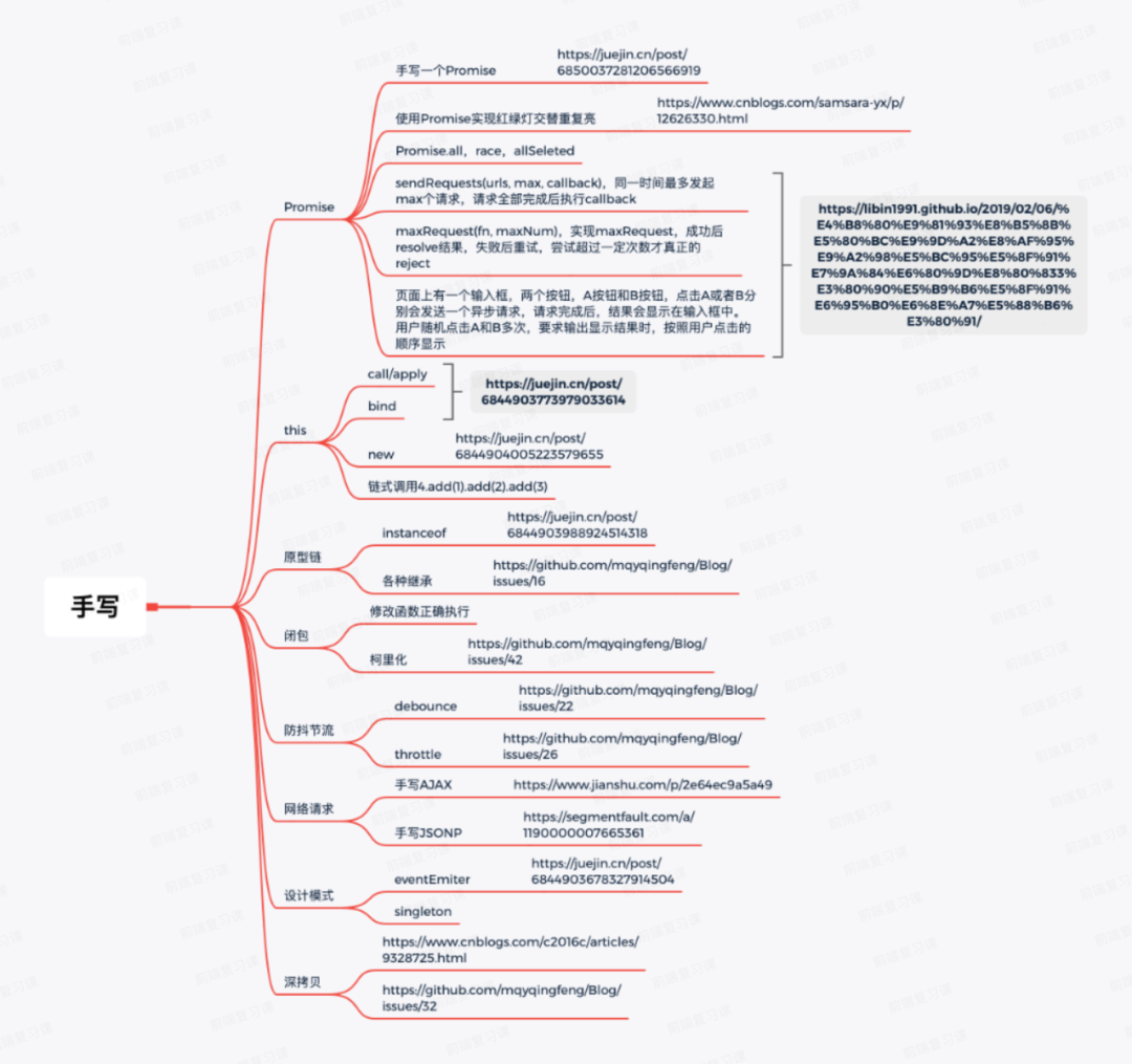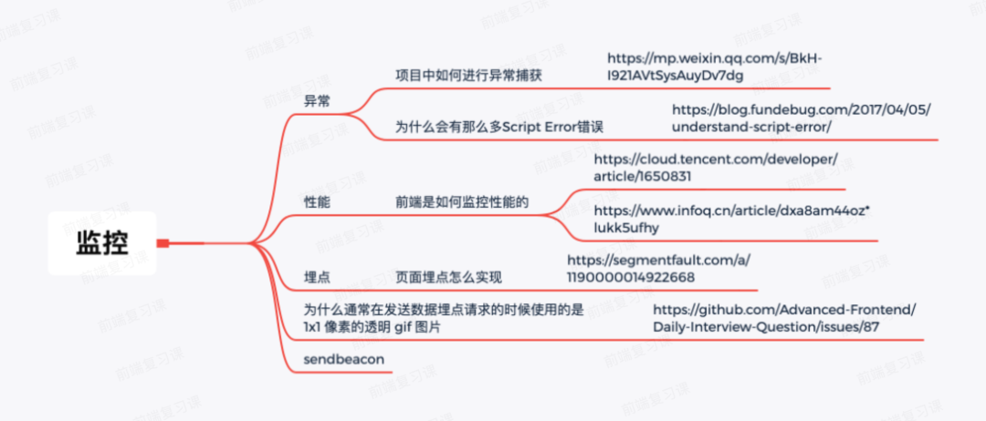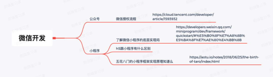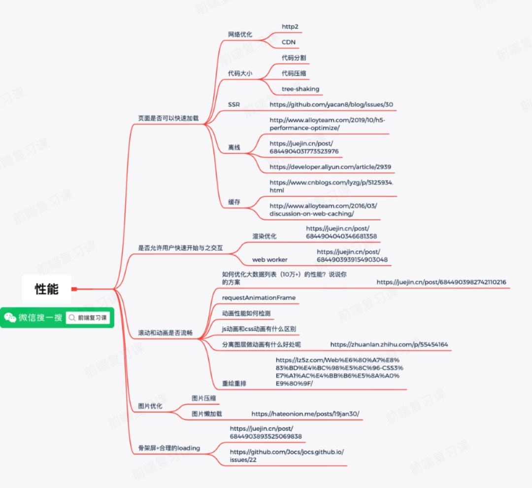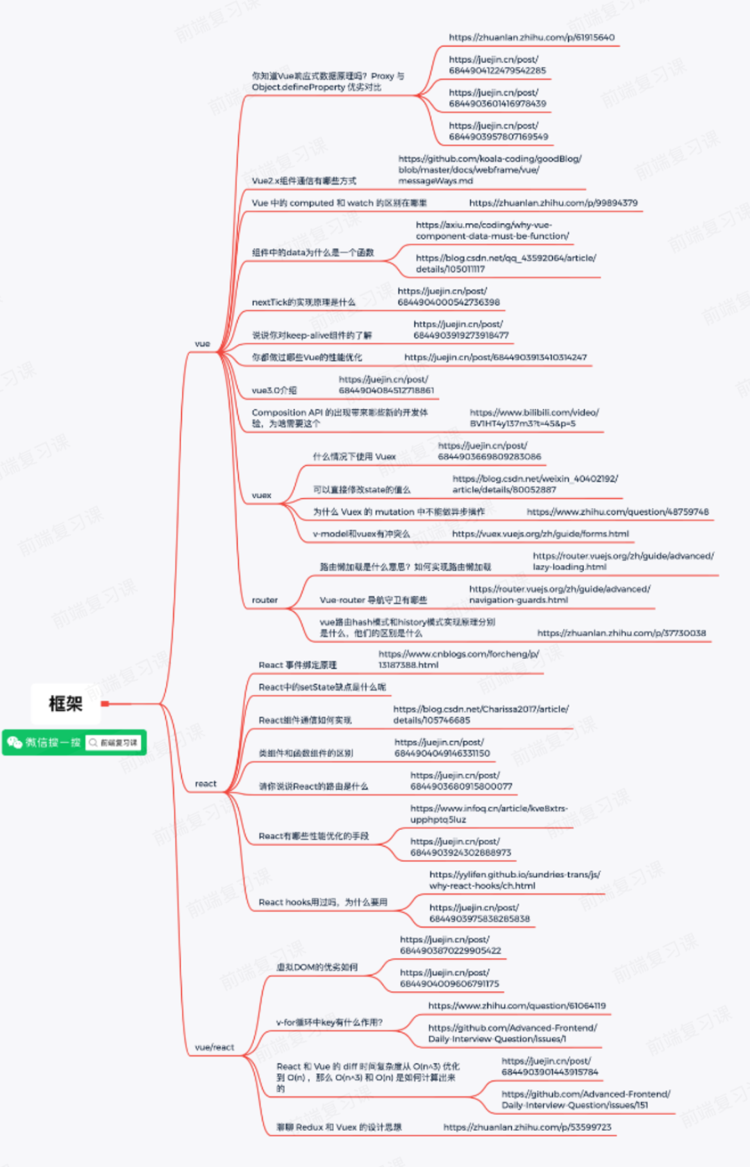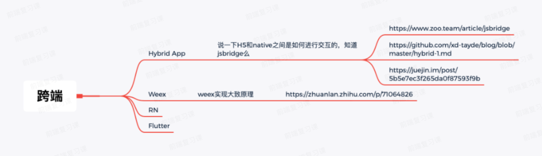最后希望大家都能找到好的工作 完整思维导图实在太大,可关注公众号「前端复习课」回复 “思维导图” 获取高清大图,总共 18 张大图。