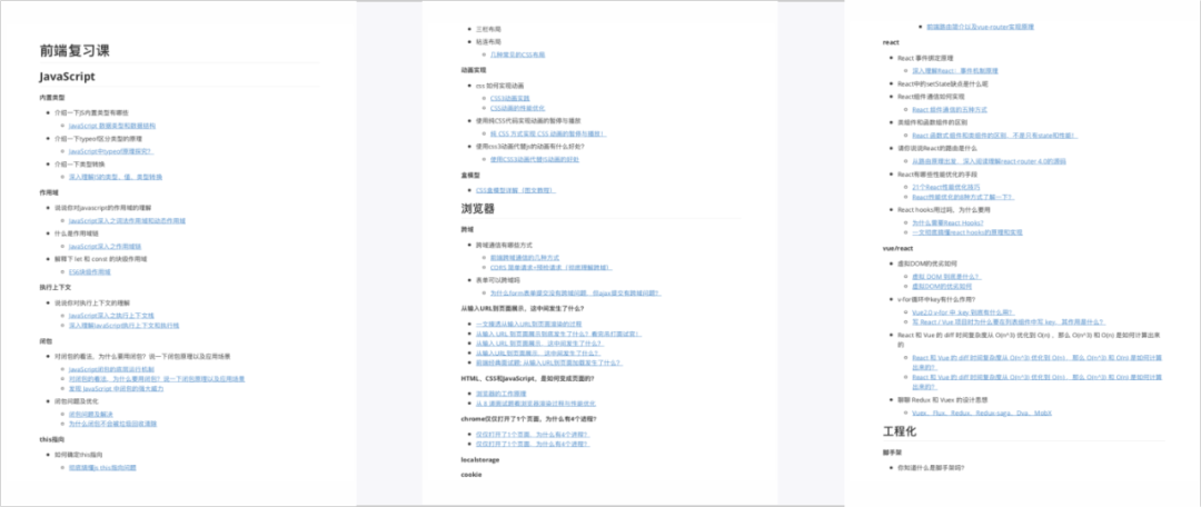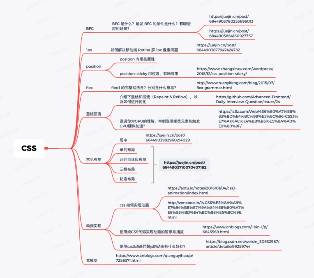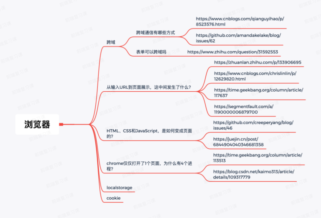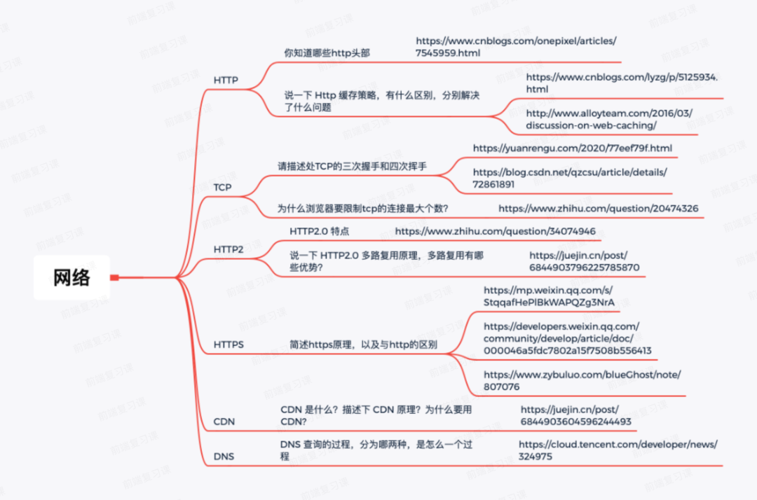 完整思维导图实在太大,可关注公众号「前端复习课」回复 “思维导图” 获取高清大图,总共 18 张。