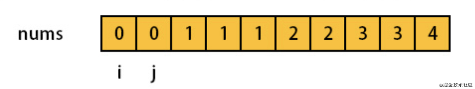nums[i]等于nums[j]说明是相同的元素,j继续走,i还在原位如果