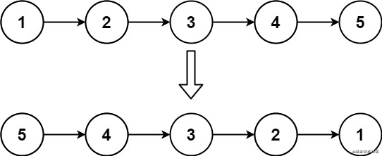 输入:head = [1,2,3,4,5]输出:[5,4,3,2,1]复制代码示例 2: