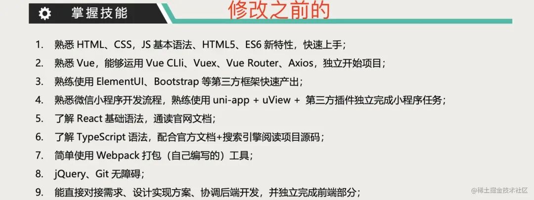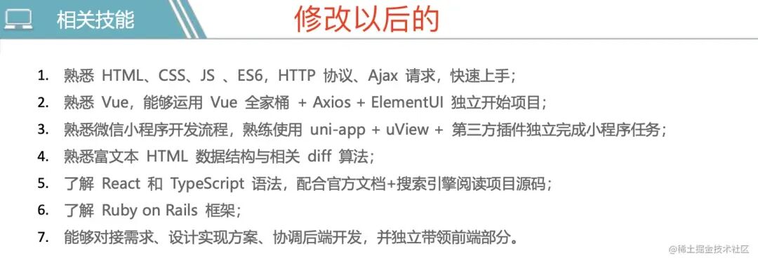 他不熟悉 Vue3 ,否则也要写到技能里