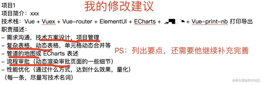 以上是经过我详细咨询修改以后的。技术栈单独分离,并且项目职责也有了个性和亮点。能体现出自己在这个项目中独有的价值。