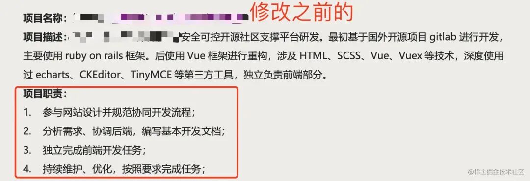 每个项目的"个人职责”写的都是一些大众内容,什么负责开发、维护、性能优化。