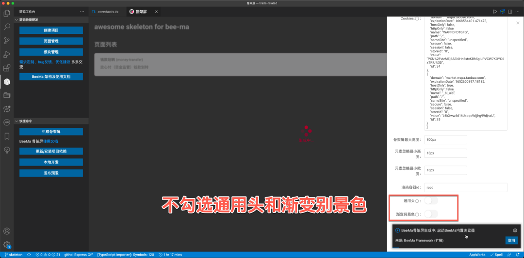 基于 BeeMa framework 插件,提供骨架屏生成配置界面