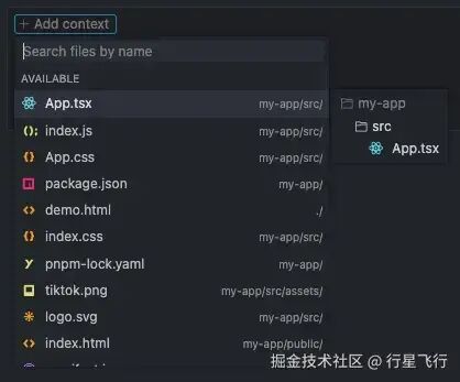 1:Add context可添加聊天上下文,在下拉框中支持搜索文件