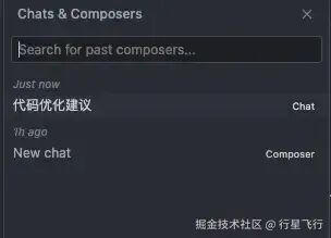 OK,介绍完 Composer 我们解释下与 Chat 的区别,其实光从名称上大家可能已经有所感知,Chat 更适合问答,因为它支持本地项目的问答和互联网信息问答,而 Composer 就是标准的代码生成器,适合处理更复杂的需求场景,如果你是提问建议使用 Chat,如果是要写代码做重构使用 Composer 即可。