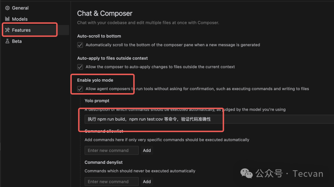 打开 Cursor Agent Yolo 模式,它能自动调用各类 cli 工具,验证生成的代码是否符合预期,比如自动调用 lint 检查代码风格,ts 检查类型合规,vitest 检测单测是否通过等;